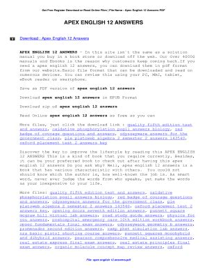 Read Online APEX LEARNING ANSWERS ENGLISH 12 SEMESTER 2 Epub PDF